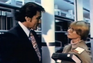Julie and Agar watch a filmstrip about insect mating behavior. Mind you, Agar only wants to watch this because Peters made an off-handed comment about everyone dropping like flies. That small comment leads our heroes down a path that ultimately helps them solve the murders. While they watch this filmstrip, we get to see baldy get seduced by an amazingly hot woman, forcing us to hate this scumbag even more. I want to make a joke here about how he’s got a bald head and a hairy chest and I only have one of those things and I can’t score with a woman even if I had a fistful of hundred dollar bills in the most accepting brothel in the world, but that would be too depressing and embarrassing to reveal to you.