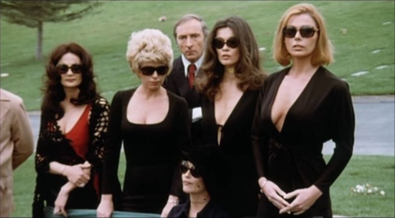 Before we really get into the meat of this movie, that description is pretty great. First, I’m fairly certain “sexual exhaustion” is not a real cause of death. Like maybe a guy dies of a heart attack during sex, sure, but you call that a “heart attack” not “sexual exhaustion”. Next, that description kinda took away the whole “mystery” of the movie. I use mystery in quotations like that because, goddammit, this movie was not made to be a mystery. It was a way to make a titty flick that could be shown in normal theaters.