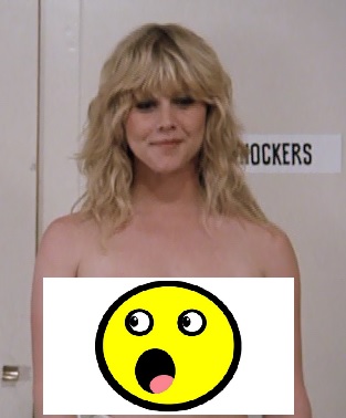However, as the next scene would indicate, he’s not so bad at getting to see lots of boobs. He goes to watch a race car driver and get some pics taken of the testing in this sorta stock car type of racing thing. The photographer girl is cute and he seems to be hanging out with her and it might be a thing where they are a thing? I dunno. The pit crew is kind enough to tell us that the car is indeed “tits” because it is so fast. We’re also shown that the driver is a girl who takes Cody back to the locker room and just takes off her racing outfit to show him her knockers as if it is the most casual thing in the history of things. Also, I think, based solely on the name on her locker, her name is June Khnockers. Fucking amazing.