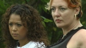 We are introduced to two lesbians chatting up a guy in a chat room. One lady looks kinda like Virginia Madsen and the other is a maybe Asian or maybe black, but whatever she is, they invite the guy over for some making out. The scene cuts to some shots of this little town. There are scenes of a car driving down the street mixed with shots of a spider capturing some prey. You get what’s going on here? The two lesbians are the spider. The poor son of a bitch they were chatting up is the prey. Get it? I’m smart and stuff. So they meet this guy and take him to their place. They talk some psuedo sexy talk on the way back to their house. When they get him home, they cuff him and blindfold him. The Virginia Madsen chick suddenly gets nervous and agitated. She even gets a little disgusted when kissing the guy’s body. They get him all excited and talk to him about some shit Lupe, the non-Virginia Madsen girl (who is named Jennifer), learned in Bombay. When the guy finally realizes these ladies are kinda weird and, ultimately, wants to leave, they strangle him and start making out over his carcass. Which kind of reminds me of how my last few dates went.