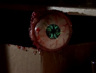 Later, Cat has fallen asleep and the Killer Eye goes on the prowl. It climbs into bed with Cat. When she wakes up to find it between her legs, it kills her. It was all like, “Nah, I don’t want to control a chick who isn’t into dick, man… I’ll just kill her.” Or maybe it was like, “Oh shit! Sorry! I didn’t meant to melt your body or nothin’. Gosh, I’m really sorry…”