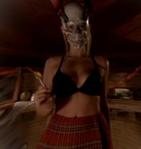 I can say, though, that this is unequivocally much better than The Gingerdead Man. This movie looks like fucking Dances With Wolves compared to that one. The five girls are, as promised, hot as shit. We got some good girl-on-girl making out with Jenna getting all sexy with Cat while under the Eye’s control. I would have thought there would be more boobs all things considered, but Lauren Furs (*snicker*) and Olivia Alexander (who played Giselle) definitely get the job done. Also, I gotta say, I was in favor of slightly more pale, bloodied Rocky. That was hot. I don’t know what it says about me, but I know what I like.
