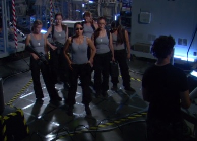 Also, why is the team all female? Is there a particular reason for that? I’m not saying I’m not into it, because… phhht, I am way into it, but is this The Asylum’s way to just make sure we get to watch girls in tank tops carrying around machine guns and acting tough to keep us watching? For that matter, why are they carrying machine guns? They are just meant to hop over to the lab in Stuttgart, Germany. Doesn’t seem like they were invading Stuttgart.