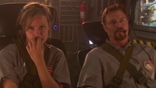 Enter yet another hot lady to the fray – Emily Radford played by Dedee Pfeiffer. She is Harnet’s ex-wife and the creator of a laser drill thing that can penetrate the Earth’s crust. She doesn’t like the military and is reluctant to help, but gets talked into letting them help when Harnet explains Emily’s sister, Kristen, the leader of the lady soldiers (I guess?) is trapped inside the Earth.