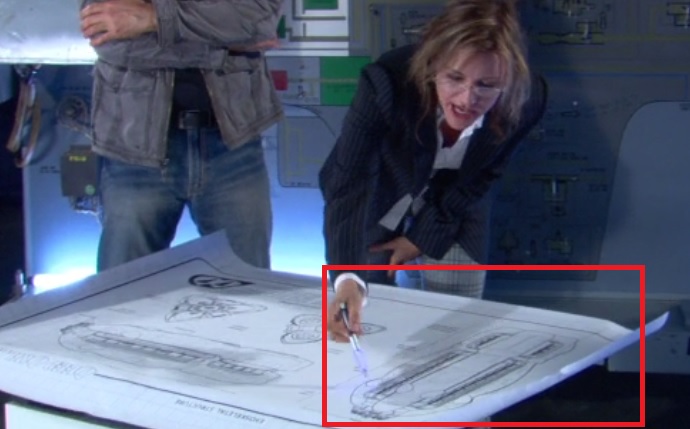 Meanwhile, Harnet and Emily are talking about her “Deep Digger”, or “DD” for short. This sounds an awful lot like “Dedee” which the actress, named Dedee, is constantly saying about her invention and referring to it as a “she” any chance she gets. That’s odd. But not nearly as odd as her description of how the thing works and showing Harnet the blueprints of it. We don’t see the full thing close up, but, from what we CAN see, the goddamn “Deep Digger” looks like a fucking throbbing dick. She continually almost seems to be getting wet talking about the device – which only makes me think that this is 100% a dick joke: