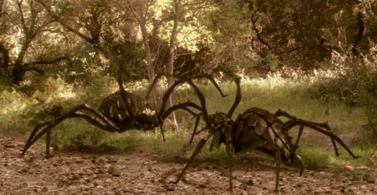 Wait… What did I just type? They saved Jansen from the spider monsters. Okay, good. When they get free, Jansen starts coughing up blood and spits up something that looks like an egg. Oh great. These spiders are kind of funny. They have that typical movie thing in which they make rattling sounds. Spiders don’t make sounds. Not themselves. I suppose they can make sounds when they crawl across something that their little legs tap against. But these have little beetle-like plates they flap. Spiders don’t have those. Beetles make clacking sounds because of the little shells they tuck their wings under, sure. Spiders are not beetles. Also they aren’t puppies. These growl at each other like a puppy playing tug-of-war with a dirty gym sock. They seemingly communicate with each other by waving their front legs at each other, too.
