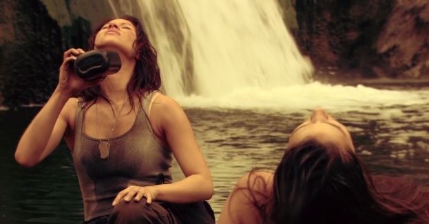 Oh, another problem introduced and quickly dropped is the knockout plant that Lake and Jansen got sprayed by. Nothing more happened to them than they got a little dizzy and were sleeping for a little bit. No hallucinations. No other center of the earth people to kidnap them. No issues with wildlife using the opportunity to attack their defenselessness. Not even any sexy girl-on-girl making out as a side effect from the drug in the plant’s spray. Nothing. They do find a waterfall to wet themselves in and poor over their tits, though: