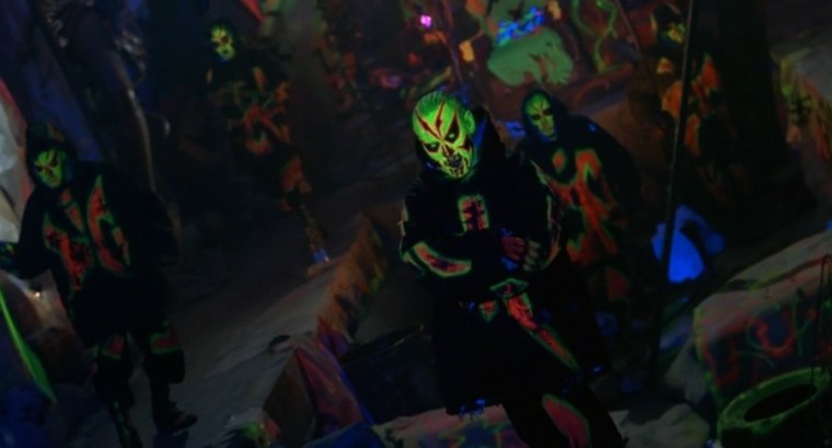 You know something else that happens? There’s a motorcycle race with Batgirl, Robin, and a bunch of other street toughs. Coolio runs it. Yeah, rap superstar from the 1990s Coolio organizes the street races in Gotham City. The people who go and watch are girls in red wigs and leather greaser jackets, guys dressed up like the droogs in A Clockwork Orange, and people dressed like Beethoven. What? Was this sequence necessary? Nope! It’s just a giant middle finger from Warner Brothers and Joel Schumacher.