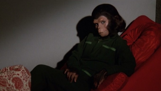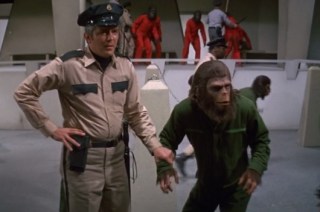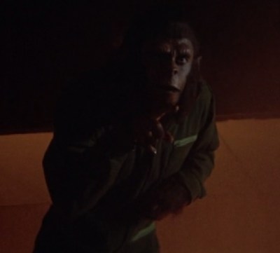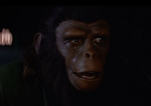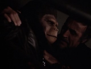 Caesar’s reaction is that of a guy who just had his fifteenth beer for the night, and a halfway decent, somewhat fit, 47 year old woman just made a pass at him at a bar. He just shrugs as if to say, “Yeah, I’ll hit it.” Now, I’m really curious about what happened to the spawn of that union. Is he somewhere out there in the follow-up, Battle for the Planet of the Apes? Is he related to the ape Roddy McDowall played in the short-lived TV series? Did he become an angry young ape who turned to a life of crime in some way inspired by Elvis Presley’s hit “In the Ghetto”?