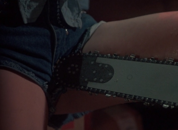 Oh wait. Actually he is. They came to the station to kill Stretch but instead, the sight of a wet Stretch (thanks to a bunch of water sprayed onto her from a bucket of ice he chainsawed the fuck out of) causes him to rub his chainsaw against her twat and when she tells him he’s “really good”, the entire plan the boys came here to carry out is basically fucked. Leatherface lies to Chop Top about killing Stretch and they make off with her friend’s, L.G., body.