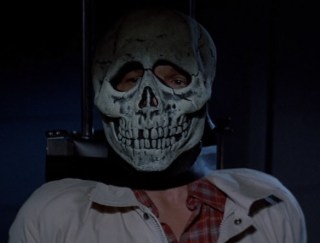 So what’s our plot? From the back of the Scream Factory Blu-Ray release: “When a terrified toy salesman is mysteriously attacked and brought to the hospital, babbling and clutching the year’s most popular Halloween costume, an eerie pumpkin mask, doctor Daniel Challis is thrust into a terrifying Halloween nightmare. Working with the salesman’s daughter, Ellie, Daniel traces the mask to the Silver Shamrock Novelties company and its founder, Conal Cochran. Ellie and Daniel uncover Cochran’s shocking Halloween plan and must stop him before trick-or-treaters across the country never come home in this terrifying thriller.”