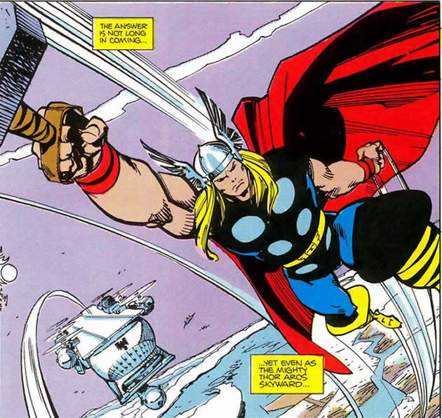 Just before the transponder goes off, it is shut down by Donald Blake, a former acquaintance. Blake tells Banner that he’s no longer practicing medicine after he went on an expedition to Scandinavia that didn’t go so well. He recalls that the team was held up by a giant snow storm. In the middle of the night, the storm broke, and Blake was called to a cave. There, he found a tomb stating it contained Thor. Thor had been banished and not allowed to enter Valhalla until he completed a series of heroic feats. When Blake took the hammer found inside the tomb, lightning shot from the hammer and brought Thor back to life. Blake says that he can summon Thor anytime he needs help to complete a “good cause”. If the deed is not good enough, Thor will not help.