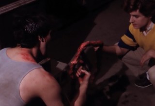 Good. It’s over. Oddly enough, there are a couple scenes of two yokels watching some guy tear his face off out in the woods. I’m not sure if that was some sort of short film the people who made this movie (or possibly the makeup people) did on the side, or if it was supposed to be the dildo guy or what.