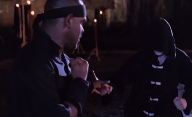 The movie opens with an Asian man in a really shitty wig coming home from the store and finding that his wife or girlfriend or sex slave or whatever she is has been killed by a ninja. That ninja fights the Asian man and eventually decapitates him. I have to wonder if the shitty wig is because the dummy used to shoot the decapitation also had a shitty wig and this is actually perfect filmmaking by making sure the guy had the same shitty hair.