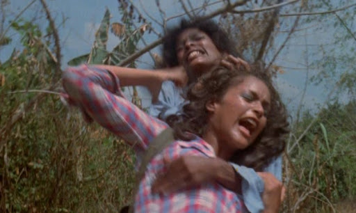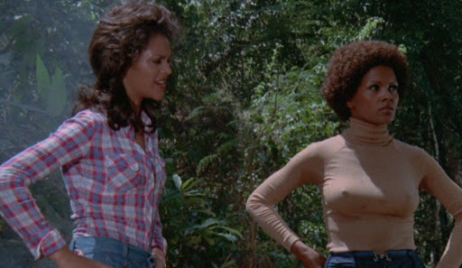 It’s here where Kelly and Anggie spot Serena (Jayne Kennedy) – an exceptionally pretty girl brought here for work in the fields until she got set up as Monteiro’s arm candy. Monteiro is the man who runs the slave camp. Marcie tells the girls that Serena is actually pretty cool. She slips them some stuff on the side like smokes and some slightly better food than what they normally get. Kelly and Anggie aren’t so into her though seeing her a bit of a traitor for getting to live high the hog with the guy everyone is slaving away for.