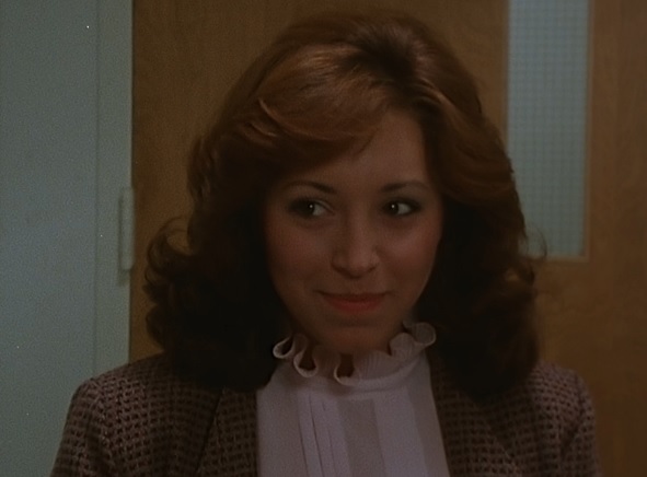 The movie spins its wheels for a bit at this point. Father Janson asks Julie what she and Cathy talked about earlier in the day before she was killed. Julie refuses to tell him what the topic was and Janson says that it would be in her best interest to tell the police when they question her about the murder. The redhead add-on girl from the other group of people awkwardly forced into this movie comes to see another preacher at the school to seek comfort and guidance about how a guy she knows came to her to fuck after the murder. This preacher had been seen previously pulling some shenanigans with another teacher at the school. There’s another whole fake out subplot going on with this male teacher, Mark, who Julie likes who has suspicious goings on. Another teacher warns Julie that he might not be all he’s cracked up to be since he knew the teacher killed at the beginning of the movie at some undetermined and also overly determined point in the past or possibly future.
