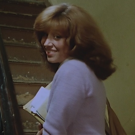 Later that day, which might be tomorrow now. Or possibly today. I don’t know, movie. I’m seriously lost in some sort of strange time loop. Julie moves into her new home. Someone knocks on her door, and she’s greeted by Mrs. Bloom, the landlady, and she is kind enough to give us some exposition about the murdered teacher and other slayings going on around town. Julie has met two older people in her new town, and both can’t stop talking about murder. I’m sure that has to sit well with this young, single lady who is absolutely brand new to town.