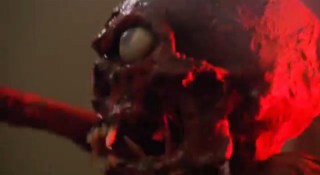 This movie starts with a family getting ready for a meal. The mom has finished cooking, the dad is shaving, and the kid is… doing kid stuff? He’s just chilling in his bedroom probably reading comics. That’s what I would be doing. The mom opens the fridge and she gets attacked by an unseen growling thing. The dad rushes downstairs to see what all this commotion is and sees the oven door jostling. Thinking, as anyone would, that his wife has somehow shoved herself into the oven, he fears the worst. When he opens the door, a skeleton demon like thing comes reaching out to him. The kid screams and we cut to credits.