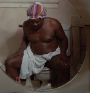 With the cops gone, Sweetback goes to the whorehouse and asks his friend Beetle to help him. We watch Beetle take a shit. Beetle refuses to help Sweetback because he’s mostly got a good thing going on, but helping a fugitive who beat the shit out of two cops would probably fuck all that up.