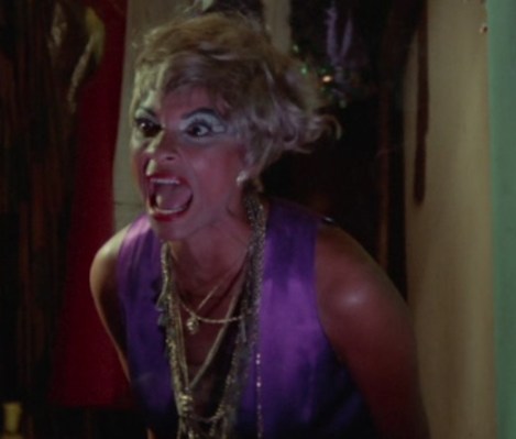 Seriously… This is basically in a living room. It’s a mix audience. The girl in the dress is, I think, supposed to be a little girl who is approached by a second woman wearing a fake beard. And he picks her up and they fuck. But that’s not all! What appears to be a drag queen comes out with a sparkler claiming to be a fairy godmother and does like a thing that basically ends with Sweetback fucking a girl. In front of everyone. What is this and how can I see it all?