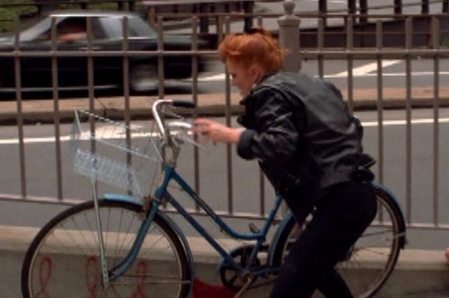 Wait… What’s this? Why is it important for us to see Tiffany take a bike? I mean I guess she’s the one running in third place in this race. Maybe she needs something to help her get an edge. Hmm.. Oh well, I’m sure it’s not important. Like I said, it would be awfully silly for this movie to have anything to do with bicycles and jousting…