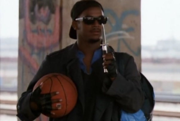 Cut to the city, and Seth Green is being dropped off by his dad at some program to “help him” get “better”. He has some freak outs from when he was a littler kid. He stumbles about until he gets to some basketball goal under the freeway in LA. I’m super curious what the dad has done. His kid has some issues. He begs not to be brought to this program, but the dad ignores his pleas. He drops him off in what appears to be a dump by the interstate in Los Angeles. Here, he can barely walk straight and he’s having some serious issues. But don’t worry, this place will make him feel better. Oh, but then he meets “Panic” who threatens him to make a basket or get his ass cut. Father of the year material right there!