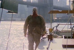 But what about that boat? Well, it is making its way, slowly and aimlessly, to New York City. The boat is intercepted by the harbor police who believe it is abandoned. The harbor cops climb aboard hoping it is actually abandoned so they can loot it and “make a nice bonus” before bringing it into the docks. They find the place trashed and infested with flies – probably from all the food rotting under the deck. Oh, and the fucking zombie that is also rotting and waiting to pounce!