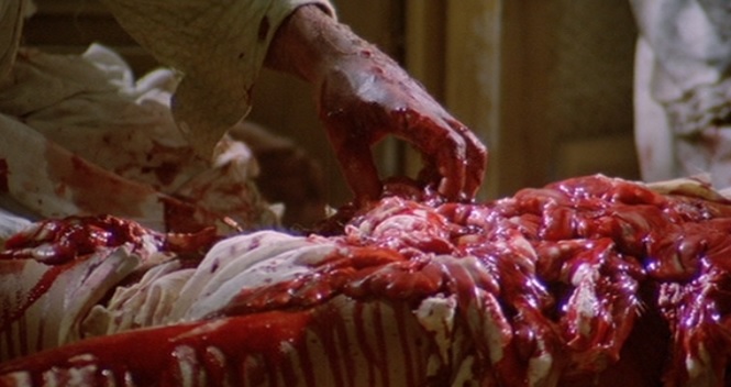 The daughter of the boat’s owner, Anne, played Tisa Farrow (younger sister of Mia Farrow), is questioned by the police. She doesn’t know anything about where her father is or what the whole zombie thing is about. The cops seem pretty damn pissy with her as if she was some fat ass zombie who wants to eat harbor cops. Speaking of harbor cops, the dead one is getting examined by the coroners. The cop decides he ain’t so sure about this being totally dead thing and reanimates.
