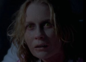 But anyway, this is a monster movie and holy fucking shit, Jessica starts getting real scary. The doc, his wife, and Robert are pretty much constantly at Jessica’s bedside to watch for troubling signs and that comes in the form of Jessica sitting up suddenly, scaring the crap out of everyone, and in a real creepy voice asking, “Who are you???” to everyone. She also calls someone a piece of shit, which is hilarious. What’s less hilarious is when she oozes thick, green puke and throws it at the doctor.