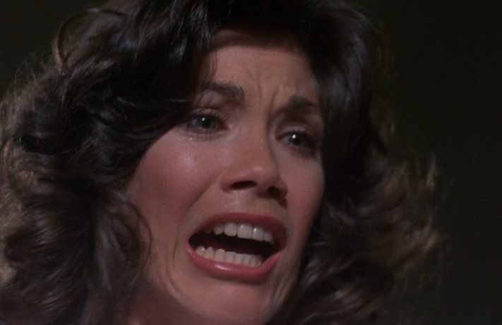 On top of that, Barbi is forcibly admitted into the hospital over these mysterious test results that are bad enough to raise alarm, but only inconclusive enough for a doctor to grope the shit out of a pretty girl.  She’s sent to a room to stay with these three old bitches (one of which, no shit, is a man in drag like Klinger from MASH).  They talk about her in front of her face about how she’s beautiful on the outside, but rotten on the inside.  When her boyfriend comes to get her, she leaves, but the nurses and her new doctor stop them and manhandle her back to the room where she eventually ends up tied to the bed.  What the actual fuck, man?