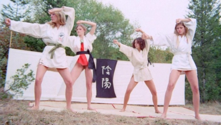 Just when I thought I’d have to spend the next 40 minutes of this movie watching these Kung Fu broads do nude yoga, something amazing happens. One of the girls is doing her breathing exercises and shit and suddenly smoke starts billowing out of her lady folds while the soundtrack makes sounds like my colon does about 30 seconds after eating Taco Bell!