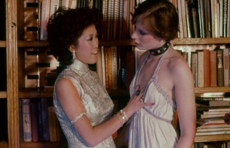 While I still have some issues with the pacing again – we’re nearly 20 minutes in an 85 minute movie and not much has happened beyond one girl getting kidnapped and broken – this movie is already much better than The Vixens of Kung Fu. The movie does have something kind of funny about it… There’s not much of a script. After the blonde actress gets off, Madam Blue visits with a friend and they are just talking. There’s no point to their dialog. It doesn’t do anything for the plot and it doesn’t sound natural at all. It’s just something to get the two girls to say hello, get over to the couch, and then have them fuck each other.