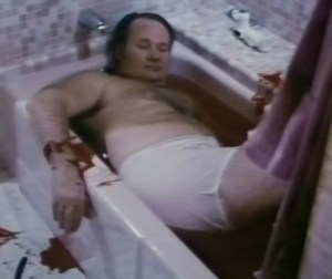 When you think things have calmed down and George has decided to stop messing with the girls under threat of apparent forced suicide by Mama, Becky, uhm, beckons him into the bathroom to shower with her. She shows them titties and he actually covers her up and tells her no. But… Well, Mama, Becky, and Addie (Currie) attack and slice his ass up.