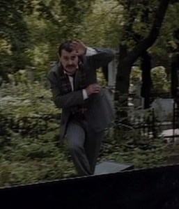 Radu survived being burned by the daylight by the flames engulfing his body causing the tree he’s impaled on from breaking and throwing him into a puddle of water that extinguishes his body. He creeps back into Crackerbox Palace with the Bloodstone that wasn’t picked up by anybody at the end of the last movie, and a hilariously bad strobing title sequence begins that shows bits and pieces of each of the previous movies while flashing Subspecies all over the screen.