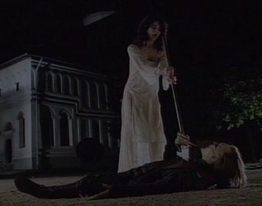 Okay, so that little detour aside, Radu goes to Bucharest and finds Ash and Serena. Again, I think they were supposedly killed in that little side adventure released prior to this movie, but I can’t say for sure. I’ve not seen it. The recap I gave above was simply from Wikipedia. Anyway, he’s there to get his revenge on and I guess kill Michele? Ash gives him a place to crash and even offers up a willing mortal to pleasure himself with, but Radu decides he will pleasure himself with Serena.