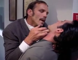 Sigh… Anyway, Roddy here is the evil businessy businessman in charge of the recording label AK-47 is on. His name is Geoffrey… Double Sigh. Anyway, he’s concerned that Fuck Machine Jones is getting offers from bigger labels like Elektra and Geffen (yeah, 25 years ago, they were still around and considered big labels. So Geoffrey here gives Hank his marching orders to always make Fuck Machine happy, even if it means he has to get rid of other band members – like Paula’s bass player fuckboy. Before a big gig, Geoffrey gives Fuck Machine a pill while whispering sweet nothings into his ear about how he’s gonna be a big star or something.
