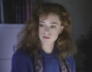 The next day, Toni is talking to the president of another frat. Jeff instantly goes for Toni when he sees her. He pours on the “charm” hardcore, but, again, he mostly comes off as a turd. Toni throws up some good defense to stifle this walking hard-on. When she is interviewing Dean Grail, played by veteran actor Roy Thinnes, they get interrupted by a student reporting her roommate, Julie Ann McGuffin, is miss…