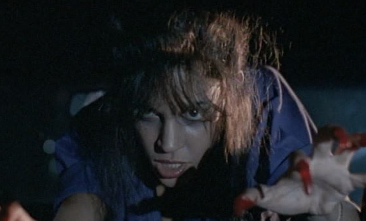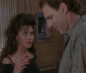 In Professor Brain Twister’s class, we meet Laurie, played by Farrah Forke who had a pretty extensive TV career through the 90s. A friend of hers, Denise, leaves class with her boyfriend and he suddenly gets real spacey when he looks at the sky and sees the sun through the clouds. That night he gets pretty shitty when she tells him that she’s got plans to go out with Laurie to hit the gym. He leaves her place upset. After she gets ready for Laurie to pick her up, she is attacked and killed by an unseen assailant. Laurie calls the cops and they come to take a look at Denise’s place to see what happened. You know, the usual cop stuff. She meets Frank Turi, a detective who will be investigating the case.