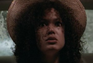 While the party goes on downstairs, Yvonne is taking a bath. The bubbles start to make her go into weirdo mode and a combination of the light reflecting off the bubbles, the loud music downstairs, and her own reflection in the funhouse set of mirrors that is her sorority’s bathroom, she goes into killer mode. She goes downstairs in her robe and picks up a pair of scissors and kills her boyfriend’s buddy causing everyone to freak out as she stalks and murders her boyfriend. Realizing what she’s done, she collapse to her knees crying. Now, this was a good scene. It does more than show confusion and frantic worry. It actually shows her just no longer being herself until she’s carried out the murders.