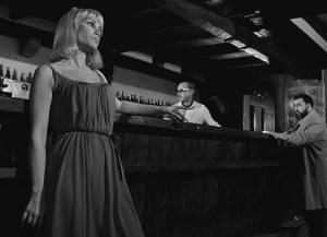 First of all, in terms of the atmospheric appearance of the film, the movie is one of those really pretty black and white movies. It’s well preserved and crisp. The scene on the train when Nadia was seducing Vicas was marvelously lit and really sexy (but more on the sexy in a moment). However, my favorite scene was when she was following Moroni in the foggy streets. You can argue the fog was inconsequential and kind of incomprehensible because it was suddenly there and then suddenly not, but it really looked good. The overall look reminds me of one of my most favorite dreamy, moody, and atmospheric thrillers of all time – Carnival of Souls.