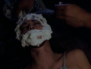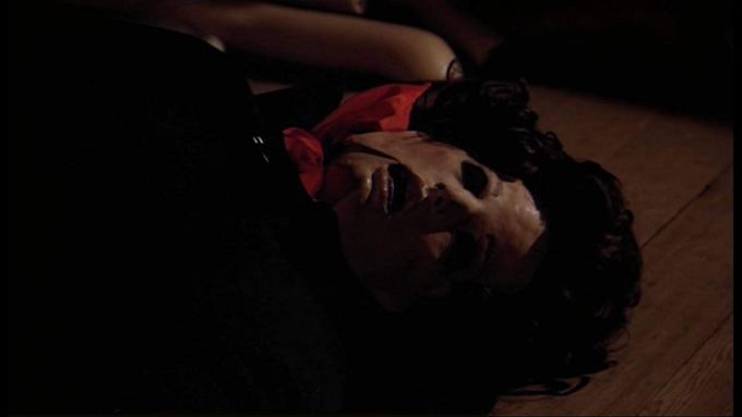 As chilling as that is, the most memorable scene in the movie happens next. Davey comes downstairs dressed in a tuxedo with a tray of drinks and claiming they are going to have a party. He tries giving the girls drinks but they ain’t budging on the niceties. Davey straps Tina’s head down to the table and covers her face with plaster, suffocating her. Mixed into the music while he covers her in plaster, we hear a heartbeat that first slows, then completely stops as she dies.