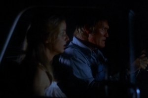 While Molly is in a bedroom being looked after by a mysterious woman, and Slausen is having a soup party with a mannequin, Jerry and Becky are still in the basement. And, no, I was not going to let this entire article pass without saying that I wish I had my very own Tanya Roberts that would like to play a rousing game of “tie me up in the basement” with yours truly. That’s beside the point. Jerry gets free and unties Becky. They go upstairs and have a close call with Slausen. When Jerry tries to find a way out and find Molly, Slausen finds him leading to Jerry running away into the night.