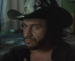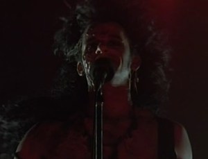 What we have in this movie is a guy who has a cool look. Sammi Curr is one of those hair rock guys from the 80s with lots of hair, leather, black fingernails, tattoos… Add the burns to his face, and you have an interesting look. The music is pretty good too. It’s by Fastway and I kind of dig it despite not being big on hair metal from the 80s.