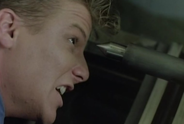 Anyway, the bullies mess with Eddie the next day, but because the Sammi Curr album is playing, the bully’s tie gets wrapped up in some shop machinery and he almost gets his face fucked up.