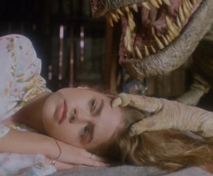 What’s interesting, though, is that I’m not sure what the original intention of the director and co-writer, Stewart Raffill, was. Basically, he had a chance to film with an animatronic T-Rex that was owned by some guy he knew. Within the next month or two, it was being shipped to Texas to be placed into a park. Everything seemed to work, so he was like, “Let’s make a movie with this thing!” He didn’t have a story, but he only had a month to get everything together before it was too late to work with. He wrote a script in a week, and they got right to work. In the end, Raffill just wanted to make a goofy movie for people who liked goofy movies. He had an opportunity to use the dinosaur, he took that opportunity and ran with it.