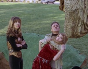 Now… I cannot let this sort of shit be. I want to give this movie the benefit of the doubt. I really do, but when the movie started I saw the title come up on screen. I thought to myself, “Hmmm… I thought that said Tanny and the Teenage T-Rex, but surely… Surely the auteur behind Mac and Me would not have let a mistake like that pass his notice. Nah… He wouldn’t do that. Oh! Look! It’s sexy Denise Richards doing sexy cheerlead…”