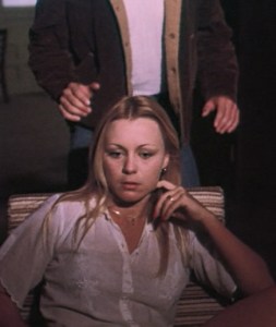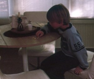 Their sexy shenanigans end while someone creeps around. Joey, Kathy’s doofy boyfriend, looks for his joint while she goes to take a shower. I also realize that not only does this movie not feature Susan at home with the kids at all in this movie, but Kathy has two shower scenes and we see no boobage. That’s a shame.
