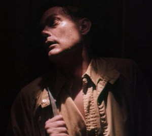 In a particularly gruesome moment, he doesn’t just slice her throat, he also stabs her and it looks almost like he gets sexual released from it as the knife slides in an out of her stomach. He also licks the blood or eats a little bit of her innards. It’s a very well done scene.
