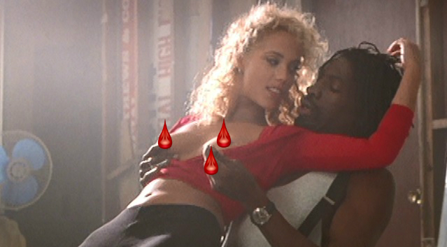 They raise their offer to $500 for her to dance for Zack while Cristal watches. She still tries to refuse but Sanchez is there to say that’s a deal. So we get a scene in which I wish I was Kyle MacLachlan to have a totally nude Elizabeth Berkley grind against my crotch while Gina Gershon looks on. She makes him cum his pants.