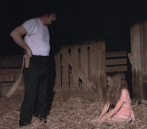 You know… Monica Gayle reminds me a little bit of Camille Keaton mixed with Sissy Spacek. That rape scene with doughy as fuck Carl was raw and startling like something in I Spit on Your Grave. Anyway, I guess his tears weren’t enough for her to not tell someone, so a car full of dudes chase Carl down. They beat the fuck out of him. While they do that, Jamie’s Pa whips the shit out of her for listenin’ to that devil country music during church service.